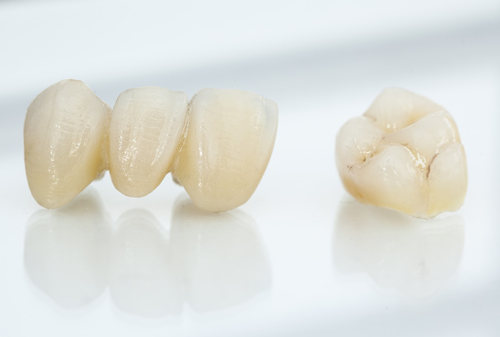 大きな虫歯や歯が欠けてしまった場合には、歯冠部に被せものをします。天然歯に近い見た目が得られるうえ、セラミックの被せものはプラークがつきにくく虫歯になりにくいという特徴があります。内部に金属を用いて、表面にセラミックを焼き付けたメタルボンドや、内部も表面もすべてセラミック製のオールセラミックなどいくつかの種類があり、費用などが異なります。